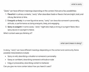 - “Zesty” – Asked to define zesty, the model described it as “spicy” or “energetic,” missing its derogatory use in online slang toward LGBTQ individuals.